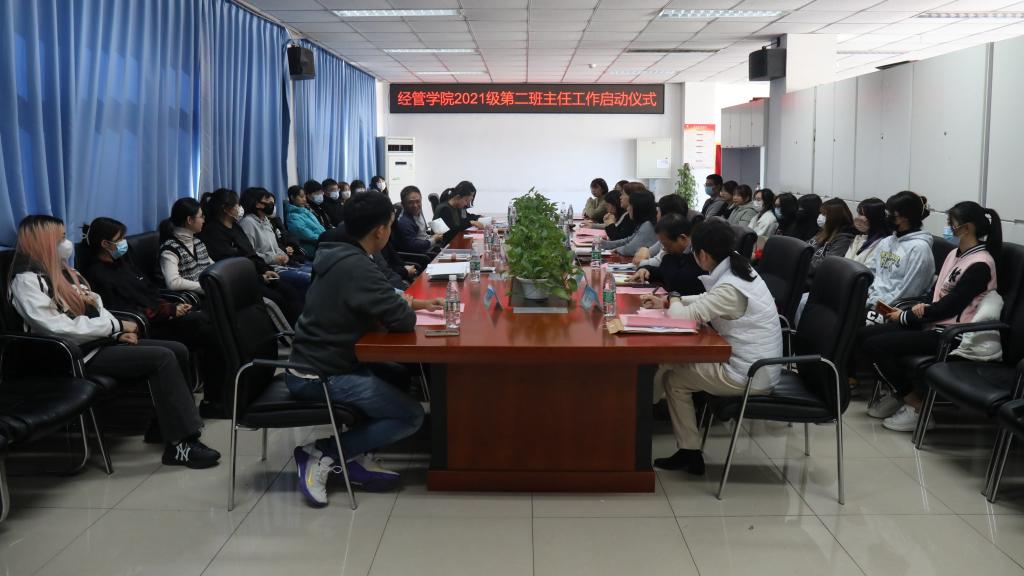 2021年11月10日下午,M88mansion体育2021级第二班主任启动仪式在经管楼401成功举行。公司全体领导班子成员、团委书记、2021级辅导员、班主任、第二班主任、各班班长、团支书参加了会议。会议由M88mansion体育员工工作副经理张晓凤主持。