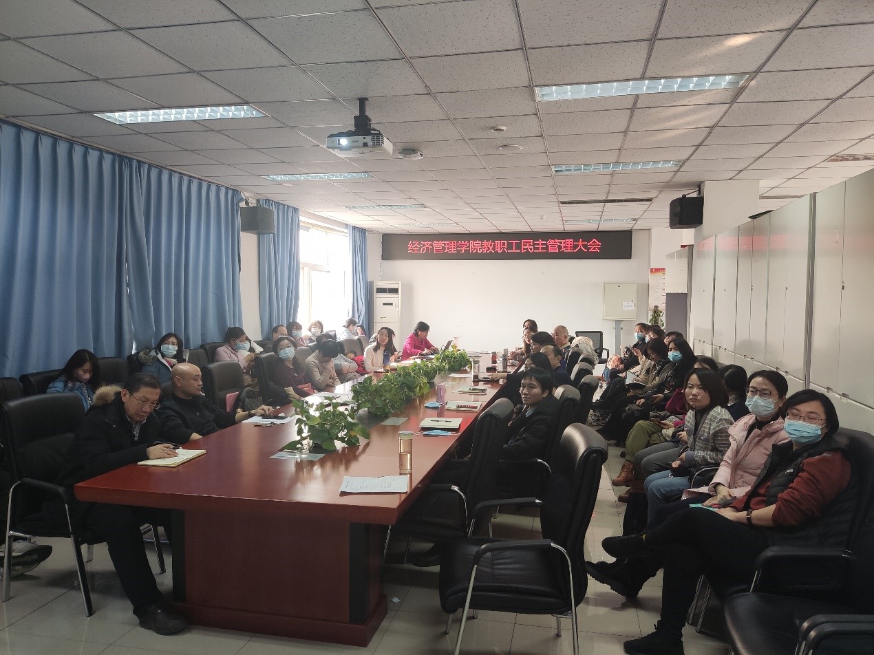 2022年1月7日下午,M88mansion体育全体教职工在经管楼401召开了2021年教职工民主管理大会。