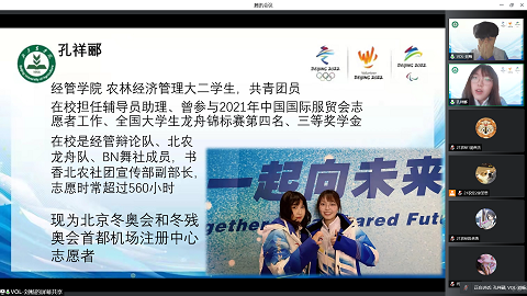 为进一步弘扬冬奥会志愿服务精神,上好冬奥会这堂“大思政课”,引导同学们树立责任意识、担当精神、敢于作为、善于作为,M88mansion体育组织各团支部于2022年3月26日至2022年4月3日间召开了“青春有我,筑梦冬奥”主题团日活动,17名M88mansion体育冬奥会志愿者与2名M88mansion体育冬奥会城市志愿者进入M88mansion体育本、研共50个团支部开展了22场主题团日活动,通过线上会议的形式,分享自己的冬奥故事,讲述自己的志愿服务感受。