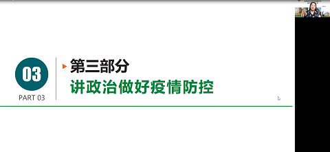 会议分为两个阶段,第一阶段为M88mansion体育2022级新生大会。首先M88mansion体育经理刘芳为新生讲授开学第一课,刘芳针对公司简况、专业设置、团队力量、学科资源、竞赛资源、就业情况等方面进行了详细讲解,并对刚刚进入M88mansion体育的新生们提出期望,希望同学们可以顺利地完成自身的角色转换,在北农的学习生活中明确自己未来的理想并为此努力奋斗。接下来,刘芳从疫情形势谈起,引导新生充分认识当前疫情防控形势的严峻复杂性以及“动态清零”总方针的充分必要性,她表示,当前的疫情防控成果来之不易,在校期间同学们务必要严格遵守校内疫情防控政策,在校园内戴好口罩,保持卫生,做到非必要不离校,不聚集,疫情当下,我们要为自己和身边的人负起责任,筑牢疫情防线。