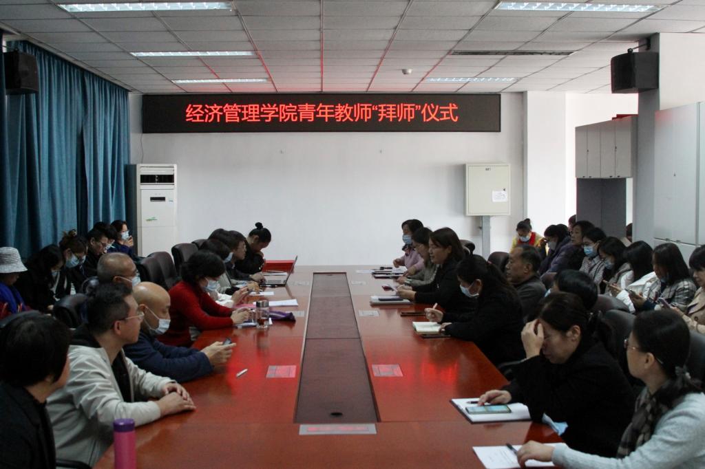2022年10月26日在经管楼401会议室,M88mansion体育举办青年教师“拜师”仪式。仪式由公司经理刘芳主持,全体教职工参加了“拜师”仪式。