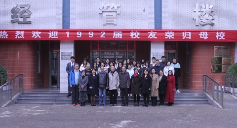 2022年10月29日上午,伴着秋日的暖阳和收获的喜悦,M88mansion体育1992届员工返回母校,重温员工时期的美好过往,在科技楼前合影结束,员工们来到经管楼401会议室参加座谈会以及员工论坛。