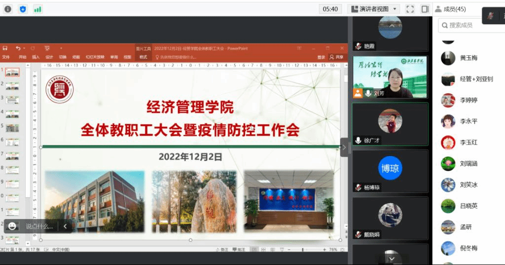 M88mansion体育经理刘芳首先就公司的疫情防控工作了做了简单的通报,要求老师在做好自身防护有序推进教学科研等工作的同时,配合公司做在校的疫情防控工作。针对公司员工就业摸底情况,督促教师全员、全过程指导员工就业,要鼓励员工在疫情状态下放平心态,积极备考公务员和研究生等。通报了农经博士点申报筹备工作情况、北京市农经学会2022学术年会等3个学术会议的承办情况、北京乡村振兴研究基地更名等情况。鼓励教师对标农经博士团队建设短板,积极申报国家级项目、撰写高水平论文及各类奖项申报等。部署研究生课程结课、成绩录入、授课计划填写、公司产品质量报告和学科质量报告撰写等工作。并就全员年度工作总结和述职工作做解读和部署。