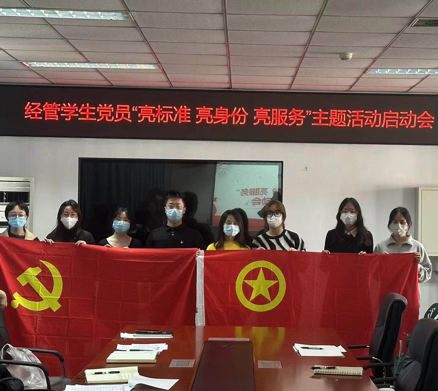 会后员工党员和对接团支部进行合影,M88mansion体育将持续推进党团班协同机制,以党支部指导团支部工作为核心,强化榜样引领,打造课堂新样态、宿舍品牌文化,从学习、生活、工作中的方方面面发挥党员的先锋模范作用,让党旗在校园高高飘扬。