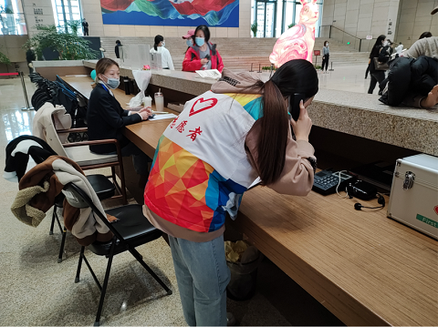 2021级国贸专业志愿者赵秋爽说:“我之前就对中国工美馆的特色展感兴趣,这次在志愿活动中与小伙伴轮班去参观了展览,由于是“内部人员”,也了解了各个展厅的特色,参观起来别有一番体会。与我想象中不同的是,来到咨询台寻求帮助的人很多,帮助游客的过程让我们很有成就感,同时也让我更加深刻的理解了志愿服务的含义。”