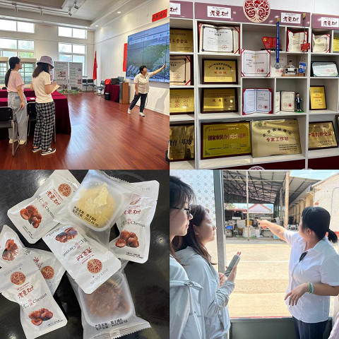 实践团一行在合作社工作人员的带领下,实地参观了合作社的生产加工车间,品尝了特色栗子产品。该合作社注重引用现代化农业科技助力板栗产业高质量发展,同时注重多种产业形式相融合,联合多家品牌推出各种伴手礼如即食栗仁、速冻栗仁、栗子糕点、板栗酒等,提高了板栗的附加价值。