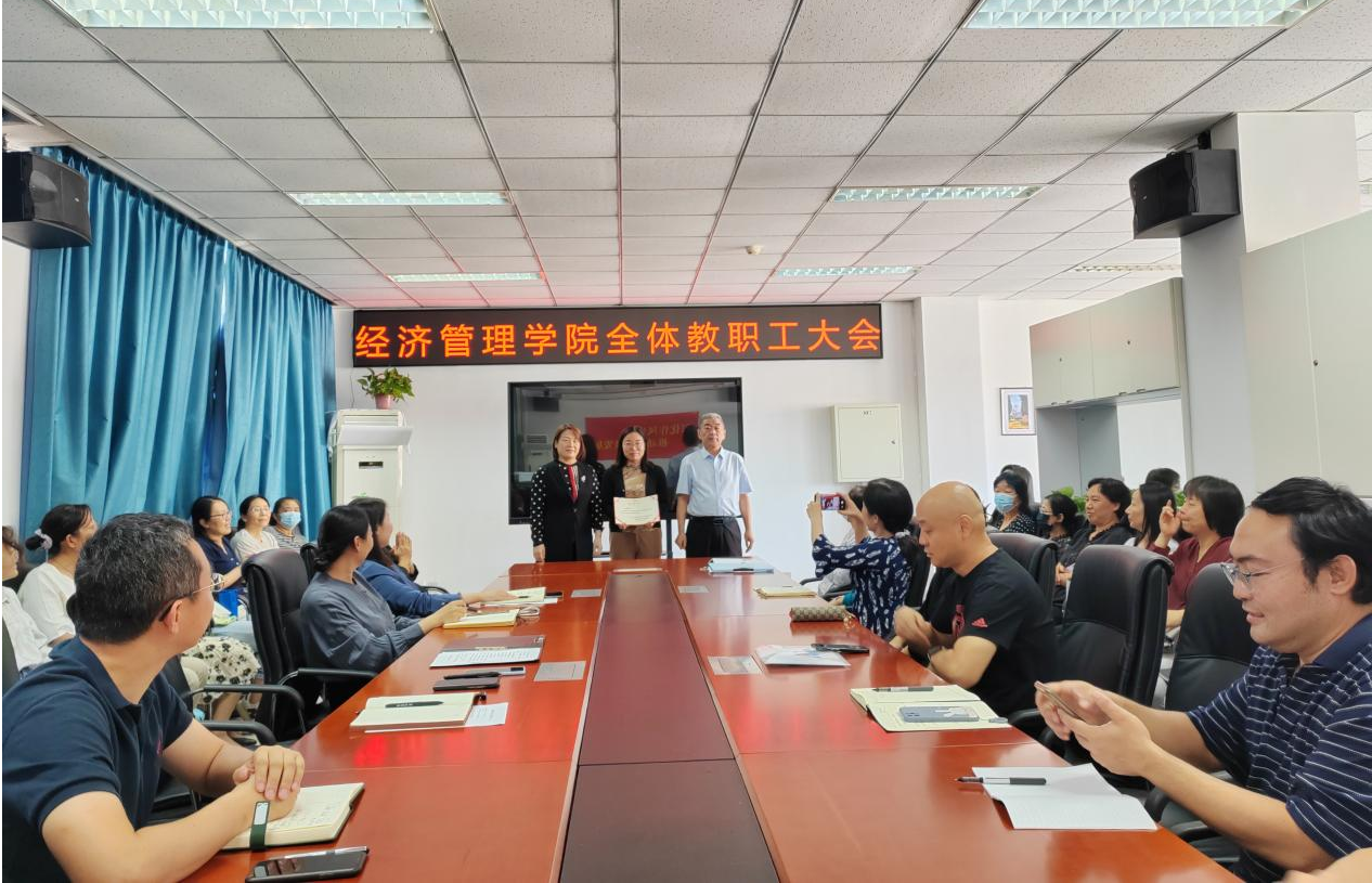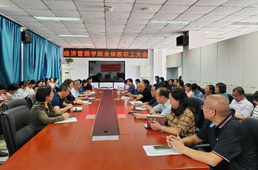 王万山要求全院教师理解支持新任干部开展工作,积极参与系主任、副主任选聘工作、分工会换届工作和教代会组建工作。