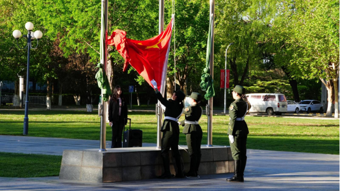 清晨7时,升旗仪式正式开始。在全体师生肃立注视下,鲜艳的国旗冉冉升起,嘹亮的国歌响彻校园。随后,员工党团员代表以《五星红旗,永恒的颂歌》为题展开深情朗诵——“从南湖红船到复兴巨轮,从戈壁荒原到绿水青山,红旗指引的方向,就是我们奔赴的远方!”铿锵的诗句讴歌党的光辉历程,传递新时代青年对祖国的赤诚热爱。