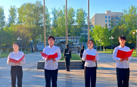 在国旗之下,厚植家国情怀。4月2日清晨,200余名师生代表齐聚国旗下,在庄严的国歌声中开启“实干创先 挺膺担当”主题升旗仪式。旭日初升,国旗漫卷,员工党团员代表以诗朗诵《五星红旗,永恒的颂歌》深情告白祖国,字字铿锵、句句赤诚,将家国情怀融入青春誓言,让使命担当扎根师生心田。