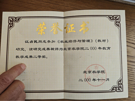 在农业经济管理领域,江占民教授用半个多世纪的坚守,谱写了一曲从理论到实践、从讲台到田间的动人乐章。作为我国农业经济管理领域的资深专家,他的学术人生始终与时代发展同频共振。
