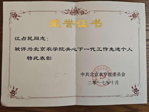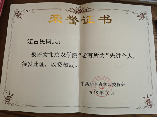 退休后,江占民教授担任教学督导十余年,指导青年教师,并被评为“MS88官方网站关心下一代工作先进个人”、“老有所为”先进个人。他告诫青年教师:“要将教学过程当作研究过程,不断思考、探索、创新”,希望M88mansion体育团队队伍不断壮大,教学科研水平持续提升,为社会发展输送更多优秀人才。