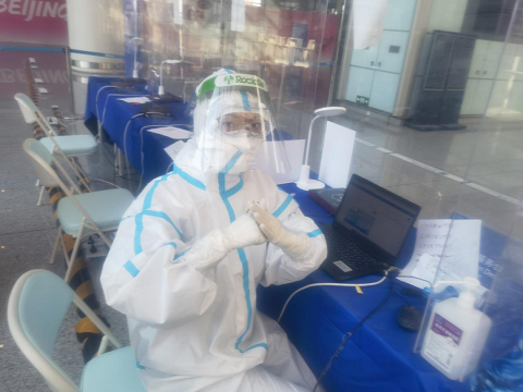 孔祥郦在上岗期间主动担任了小组的宣传委员。在岗期间负责记录同组志愿者的工作经历,她会在穿好防护服后,把手机放到密封袋里。为了能照下清晰的照片,她每次拍照前都要一次又一次的捋平密封袋。“我第一次上岗拍照,就是因为没有捋平密封袋,导致很多很好的志愿者工作镜头无法使用。不是曝光过度,就是人物模糊,大多数照片我只能忍痛删除掉,后来在宣传组工作会时,大家分享了各自上岗摄影的经验,我学习到了很多拍摄技巧和拍摄知识,才有如今镜头下志愿者们完美的瞬间。我觉得像捋平密封袋这样看似不经意的细节,才是决定照片质量的关键因素。”孔祥郦说。