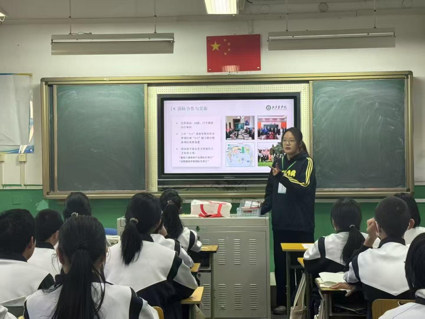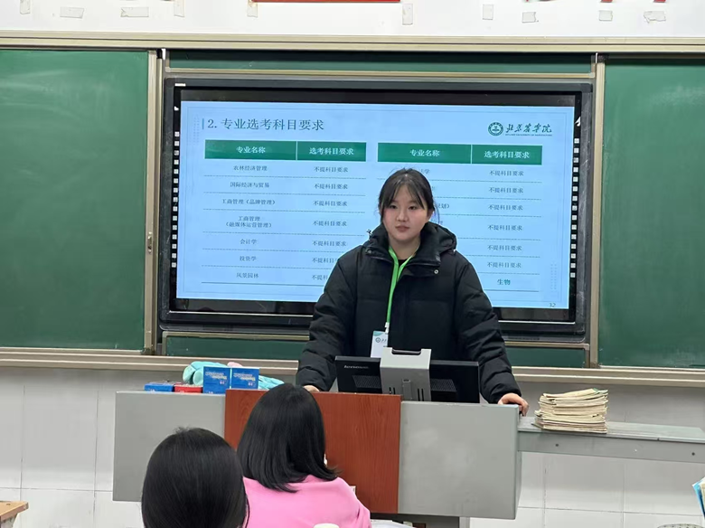 同学们先后走进北京市通州区永乐店中学、首都师范大学附属回龙观育新教育集团沙河校区和北京市平谷区第五中学等。她们向学弟学妹们介绍MS88官方网站的基本情况、办学条件、往年录取分数、就业情况等内容。随着PPT展示,校园景色、教学设施和科研平台等内容详尽,她们还结合自己的所学专业做了讲解。