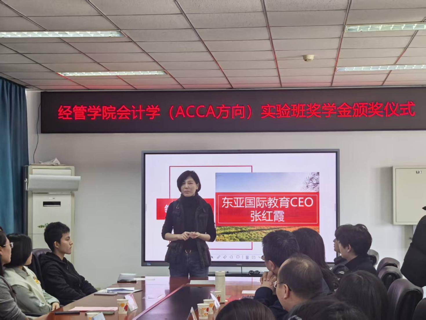 2025年12月24日,​M88mansion体育2024-2025年度会计学(ACCA方向)实验班奖学金颁奖仪式在经管楼401举行。参加本次颁奖仪式的有​M88mansion体育经理刘铁军、东亚国际教育创始人兼CEO张红霞、​M88mansion体育会计系主任白华、会计系副主任杜孝森、东亚国际教育高校合作经理董艳慧、2025级ACCA实验班班主任周艳秋、ACCA实验班班主任李红艳以及各年级ACCA实验班员工。颁奖仪式由白华主持。