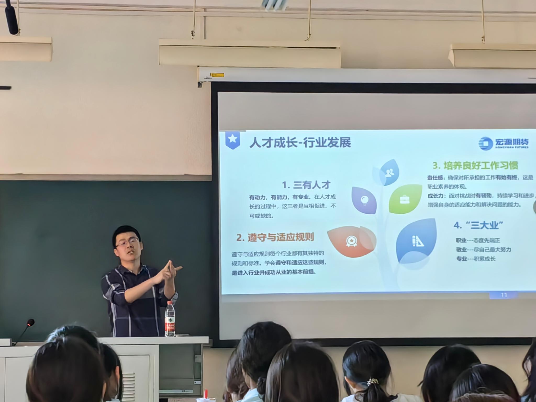 经济系教师党支部书记何伟教授、系主任蒲应燕副教授等老师们为2024级国际经济与贸易和投资学专业的61名新生进行了专业教育。宏源期货有限公司北京分公司总经理王会仕做了“个人成长与职业规划”的讲座,分享了自己的职场经验和行业见解,鼓励同学们以未来发展为导向做好学业规划,保持正确的思想政治立场和价值观。何伟书记代表经济系全体老师对新生表示欢迎和祝贺,并表达了祝福。蒲应燕主任则详细讲解了专业发展情况、教学科研平台和资源等,为同学们的老员工活提供了指导。