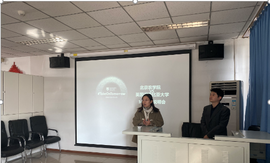 2019年10月30日中午13:00,2019年英国诺森比亚大学“3+1”联合培养项目招生宣讲会于经管楼401准时召开。本次宣讲会由英国诺森比亚大学国内项目负责人刘佳音老师作为主讲人,M88mansion体育外事负责人刘笑冰副经理主持,外事秘书徐雅雯和部分本科生参加了本次会议。