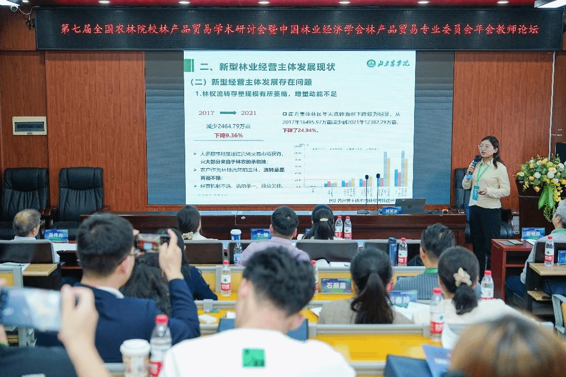 会议期间,刘笑冰教授做了题为“我国新型林业经营主体生产效率提升研究”的学术报告,与参会的专家学者进行了深入交流,分享了我国新型林业经营主体目前所面临的经营困境、生产效率水平等研究。此外,刘笑冰教授受邀作为会议研究生论坛一的点评嘉宾,对汇报论文予以点评。