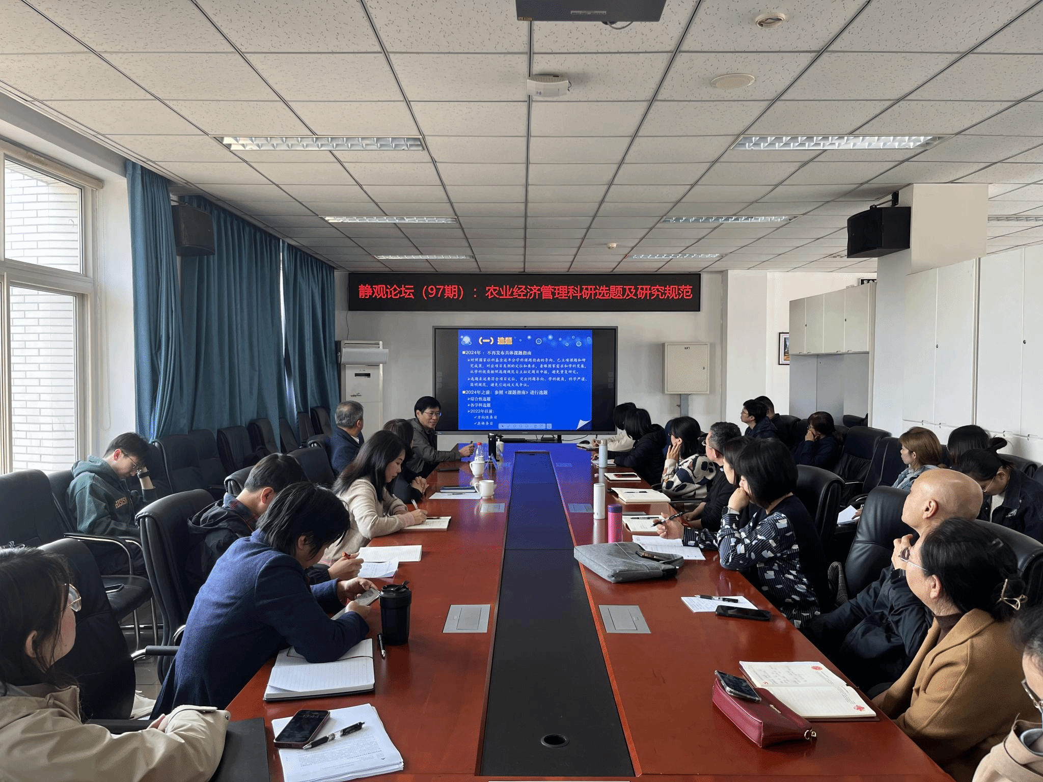 郭翔宇教授首先从农业经济管理科研选题切入,强调研究领域选题应紧密结合国家战略需求和学科发展前沿,突出研究的创新性和实用性。他系统介绍了农业经济管理研究的规范性要求,内容涉及文献综述、研究设计、成果展示等具体环节,为提高公司学术研究的严谨性和科学性提出了大量有益建议和指导。