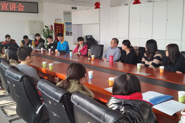 中信证券校园招聘宣讲会于12月30日下午在经管楼401举行。与会人员有中信证券的四位企业代表、公司党总支书记胡宝贵老师、主管员工工作副经理赵金芳老师、13级辅导员乔多老师以及公司毕业生。