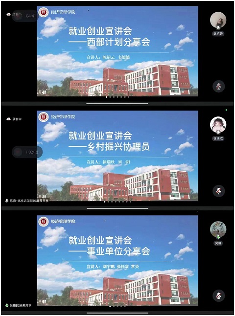 宣讲会上,陈绍云、韦嫱嫱围绕西部计划主题,徐瑞欣、刘一阳围绕三支一扶(乡村振兴协理员)主题,刘宇鹏、张钰宸、常昊围绕事业单位(编制)主题,分享了各自的报考求职经验和工作成长经历。鼓励毕业生到基层就业,把个人的理想追求融入党和国家事业之中,到祖国最需要的地方建功立业。