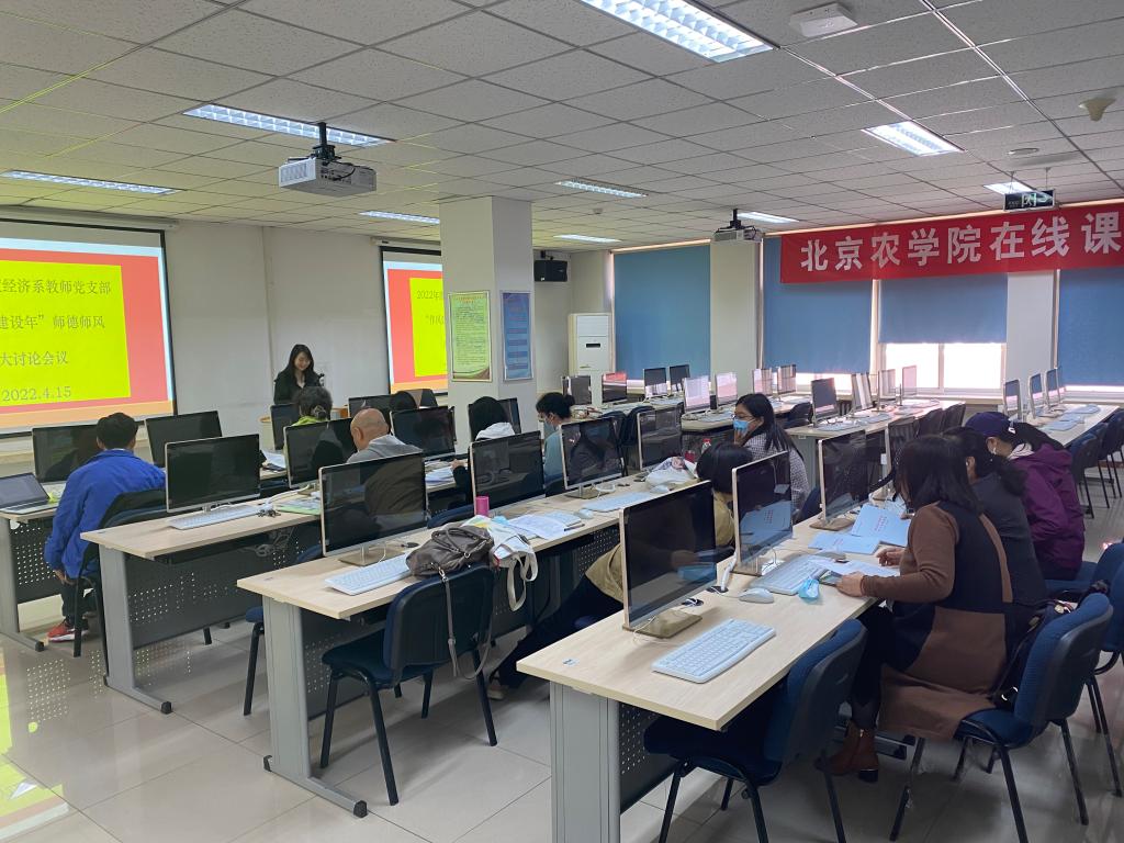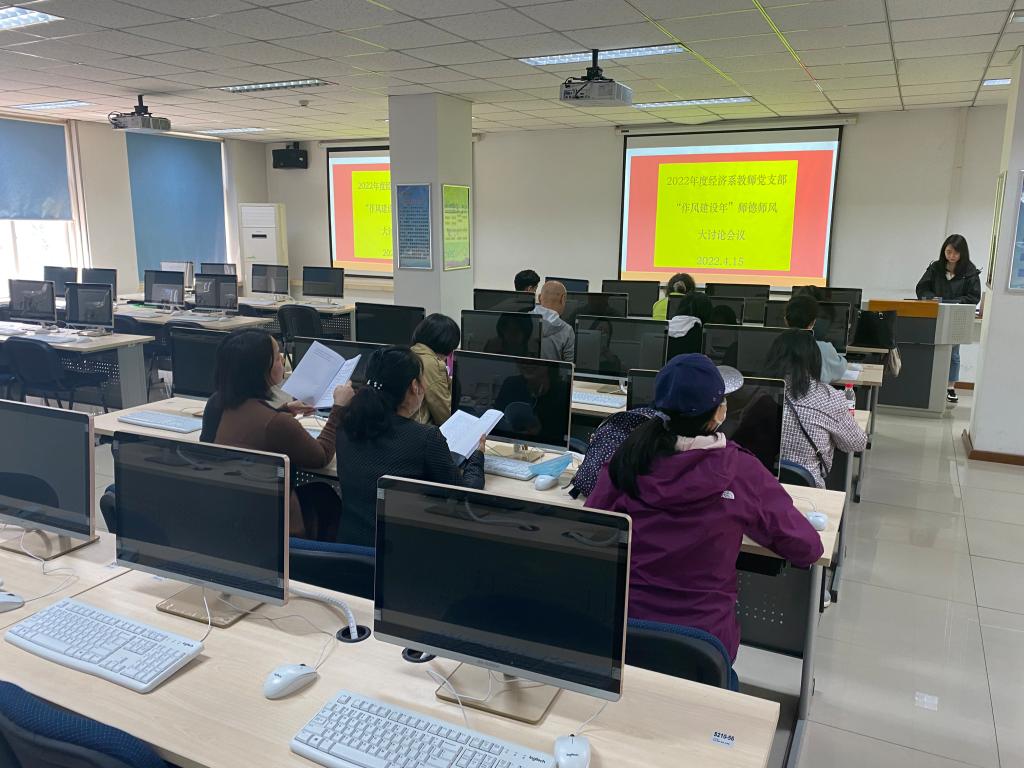 2022年4月15日,为迎接MS88官方网站“作风建设年”活动,深入贯彻落实《M88mansion体育关于开展“作风建设年”活动的实施方案》、《M88mansion体育关于加强师德作风建设的工作方案》等重要文件精神,在经管楼210教室,由经济系教师党支部联合经济系共同举行了“师德师风大讨论”专题研讨会。经济系全体党员和非党员教师参加了研讨,会议由经济系教师党支部书记王琛主持。