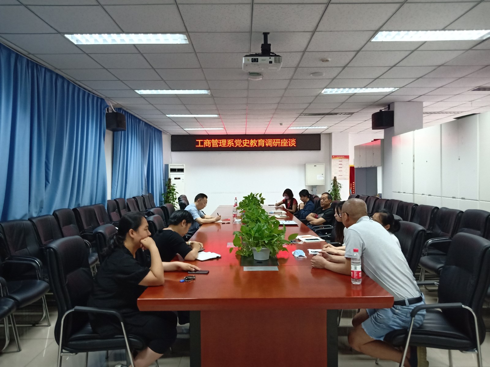 “七一”前,MS88官方网站纪委书记李伟书来到M88mansion体育工商管理系教师党支部开展党史教育调研工作,公司党总支书记胡宝贵、副书记张晓凤以及工商管理系教师党员参加本次会议,会议由工商管理系教师党支部书记张志强主持。会议围绕工商管理系的发展、团队建设、专业规划等方面进行了广泛的交流。特别是在专业定位、专业特色方面进行了积极的商榷,并提出了建设性意见。