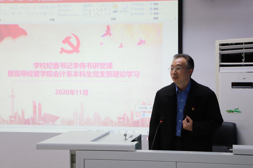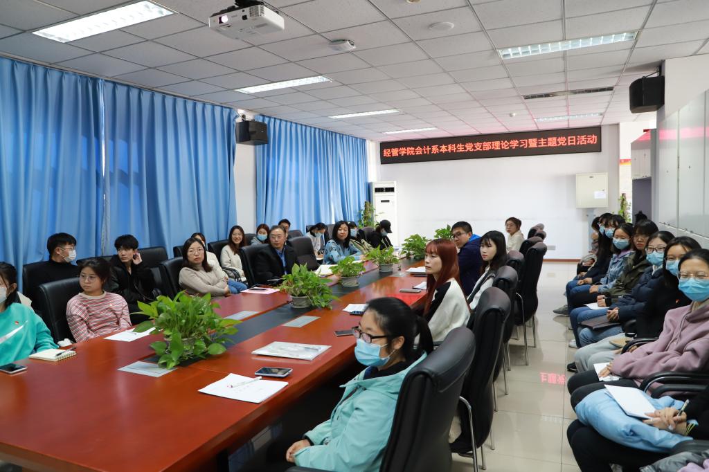 2020年11月20日,M88mansion体育会计系本科生党支部在经管楼401组织推进支部11月理论学习暨主题党日活动。MS88官方网站纪委书记李伟书,公司党总支副书记、副经理张晓凤老师,公司党总支委员、副经理刘笑冰老师出席了本月理论学习,会计系本科生党支部28名师生党员、发展对象、入党积极分子代表、入党申请人代表参加了此次学习。