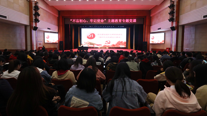 2019年10月14日下午,公司开展“不忘初心、牢记使命”主题教育专题党课活动,公司党委书记杨军以《坚守初心 不辱使命》为题为全校师生党员讲授专题党课,市委第十三巡回指导组谭永旭到会指导,党委副书记、董事长王慧敏主持。