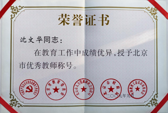 2012年,沈文华正式退休,但他的“育人之路”并未就此止步。退休后的十余年间,他先后担任公司高等教育研究所副所长、本科教学督导组组长,直到2022年才卸任督导职务。他坚守教学督导一线,深入课堂听课评课,为青年教师传授教学经验,助力他们快速成长。在他的指导下,多名青年教师在北京市青年教师教学基本功大赛中斩获佳绩,沈文华也荣获“优秀指导教师奖”。