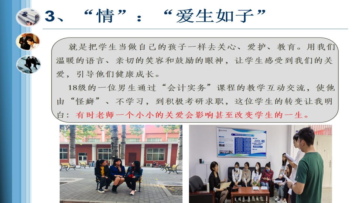 她记得《会计实务》课上曾有一位男生,在分组时怯生生地请求独自成组。李老师没有简单同意,而是私下找他深谈。起初员工不愿多说,在她温和的引导下,才吐露了因为性格内向、成绩一般而被同学疏远的孤独。李瑞芬老师开始有意识地多与这位男生沟通,主动辅导功课,鼓励他尝试与同学交流。期末,这位员工的成绩不错,脸上也渐渐有了自信的光彩。后来,他主动加了李瑞芬老师的微信,在考研、求职的路上,仍时常向她请教。“这件事让我明白,有时老师一个看似微小的关爱,真的可能影响甚至改变一个员工的一生。”