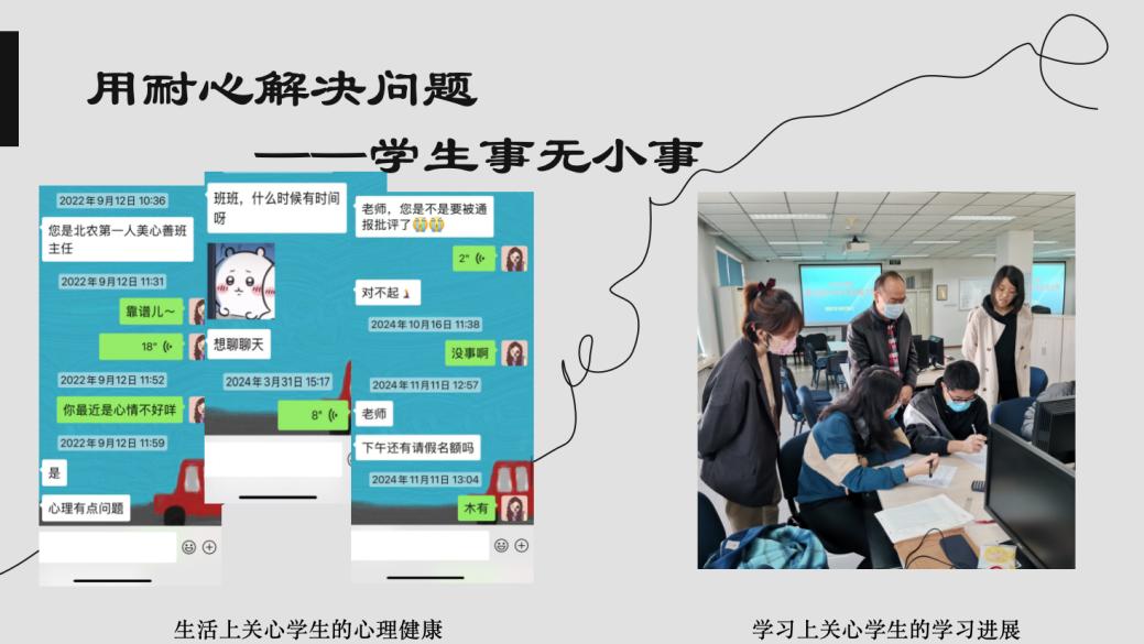 “教化,首先是关怀备至地、深思熟虑地、小心翼翼地去触及他们的心灵。”苏霍姆林斯基的教育箴言,是宋沂邈老师育人工作的核心准则。在她看来,“员工事无小事”,班主任的首要职责是成为员工在校的“暖心人”,尤其要关注员工的心理健康与生活需求。