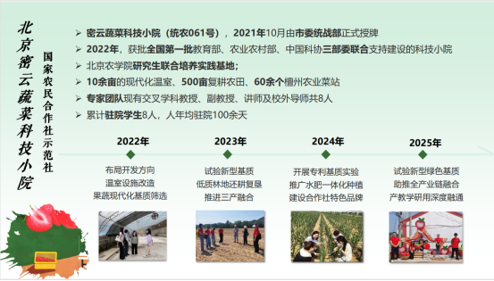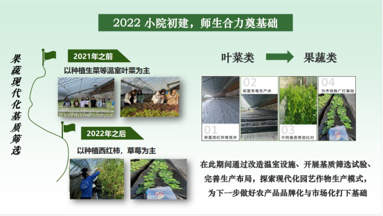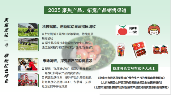 科技小院初建时,当地温室以叶菜种植为主,附加值低、竞争力弱,设施条件还尚薄弱。刘笑冰老师带领员工转向西红柿、草莓等高效经济作物,反复试验定制型栽培基质配方,获批多项国家发明专利,探索出适地高效的现代化园艺作物生产模式。2023年,面对小院低质林地还耕复垦难题,她带领员工调研土壤状况、谋划三产融合路径,鼓励员工以实际需求为毕业论文研究方向,在实践中深化对“绿水青山就是金山银山”的理解。2024年,小院迈入产学研融合快车道。刘笑冰教授带领员工考察调研、试验新型绿色低碳基质,成功打造鲜食玉米特色品牌,引导员工聚焦产业痛点和消费者需求开展研究,让科研成果服务产业发展。2025年,团队聚焦科技小院“原味一号”西红柿提质增效、品牌建设和市场潜力研究,针对其优质难优价的瓶颈,优化栽培基质配方,开展消费者调研,重塑客户画像,提升产品供需匹配度,构建品牌体系,拓展社区团购、直播带货等多元渠道,相关研究为产业发展提供科学决策依据。